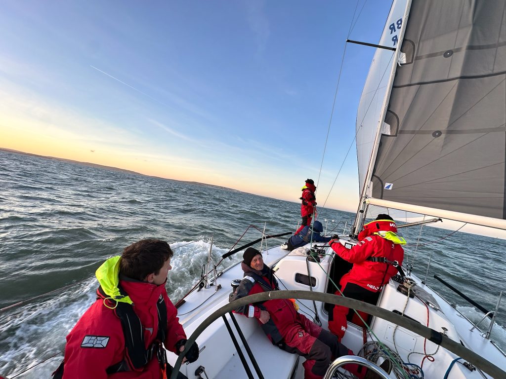A second reef in the main was needed and damage to the Number 3 jib resulting in a foresail change mid-Channel to the trusty Number 4 “blade” sail. The whole crew was cold, hungry and wet when we crossed the finish line after 12 hours and 44 minutes on a very arduous and character-building day. A post-race takeaway delivery and hot showers made us all feel a lot better. We were 5th of 6 finishers in our class on corrected time, with 10 race entrants retiring or not competing.