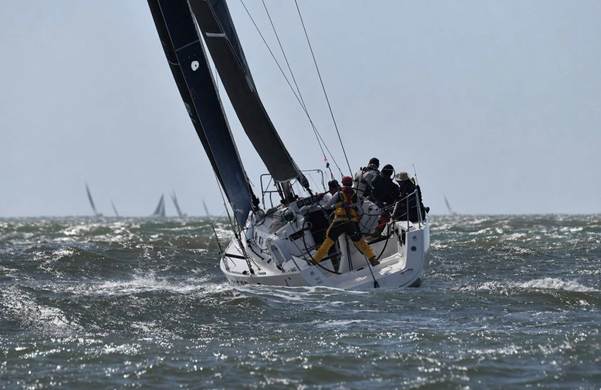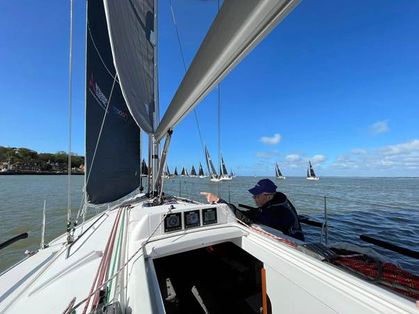 By the time we were through the Needles channel it was clear that the forecast had underestimated – we had 15 to 20 knots or more, now with wind against tide and a very lumpy sea. We had made some progress on the fleet from Yarmouth through the Needles Channel.